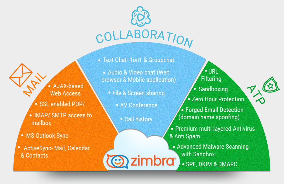 Zimbra is a complete enterprise email & collaboration solution. Zimbra by Logix consists of Mail, Collaboration & ATP features. We provide the most innovative messaging experience available today, connecting end users to the information and activity in their personal clouds.